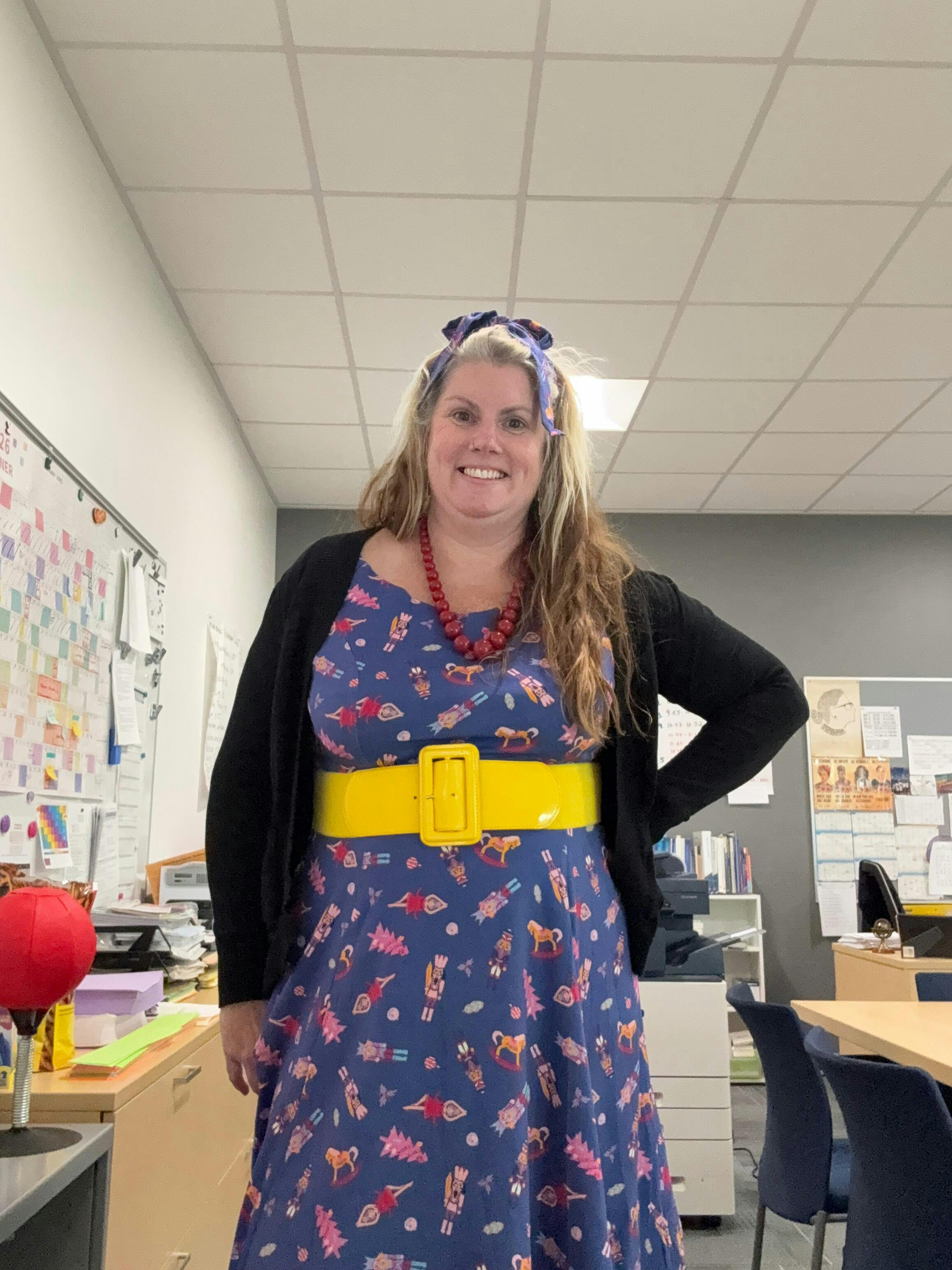 Loved the pattern of this dress. Super comfortable. Great length. The fabric was super soft. I didn't love the top . But an overall fabulous dress. It was a little big for me so I used the belt in my hair. I dressed it up with yellow belt and some fun matching nutcracker earrings!