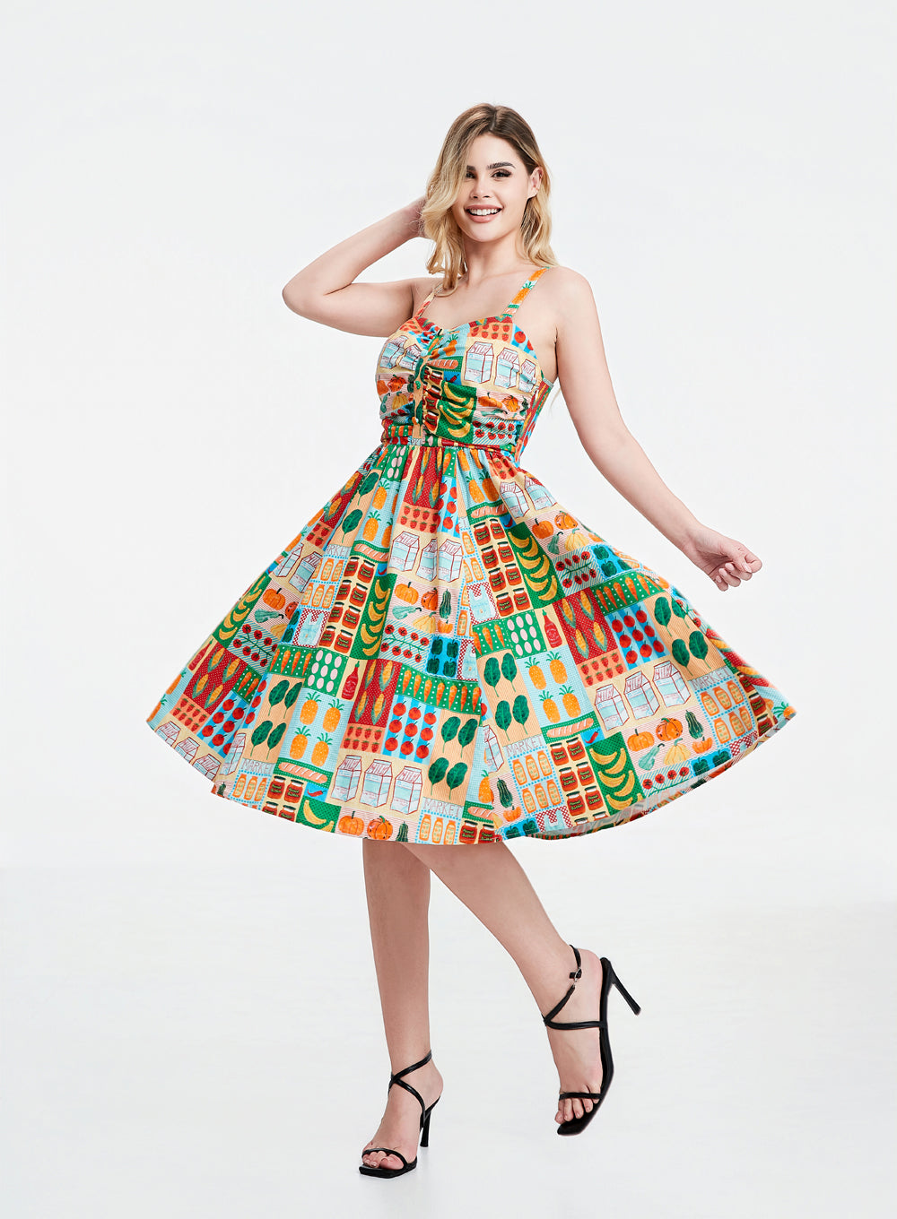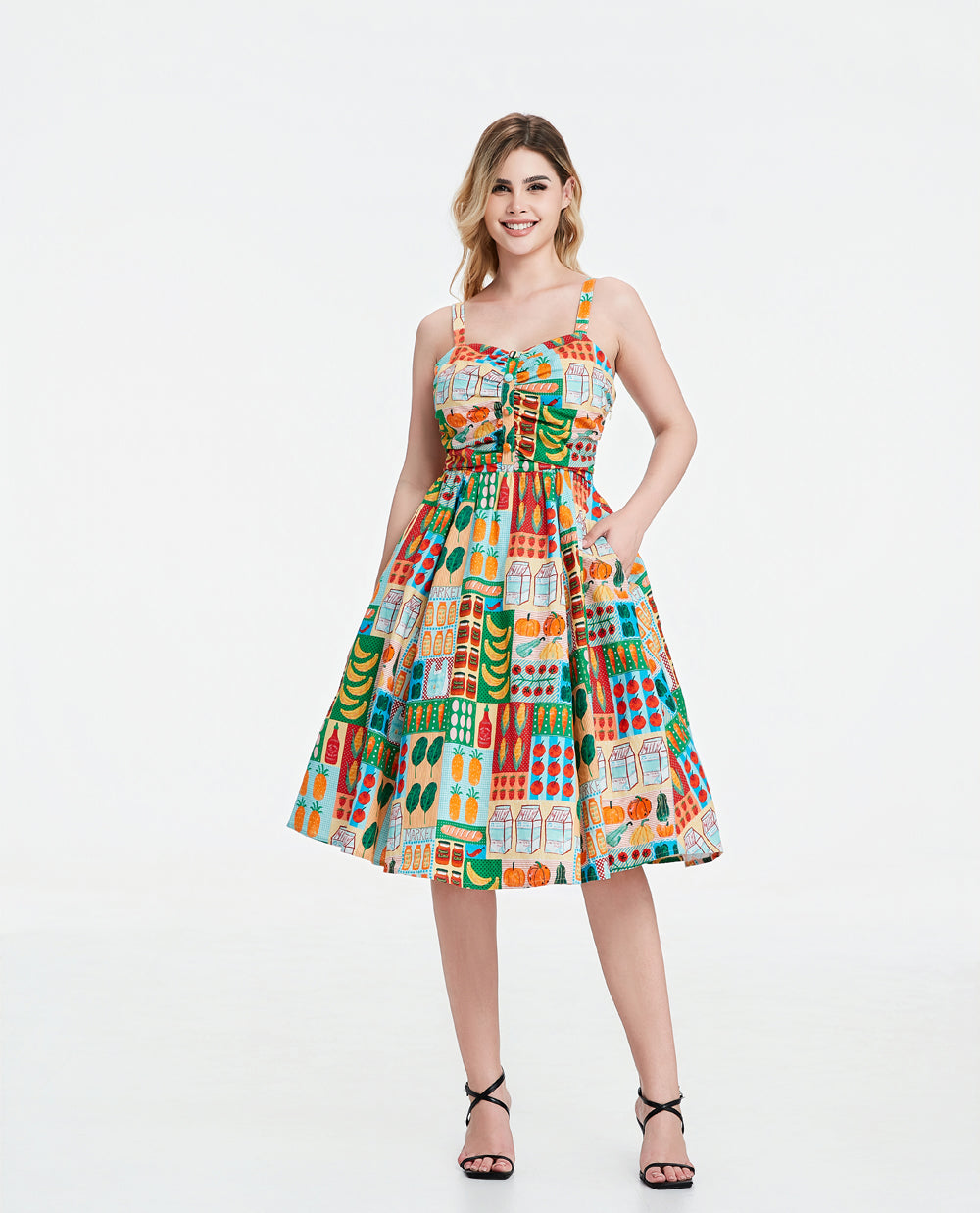 Ruched bodice with decorative buttons at bust