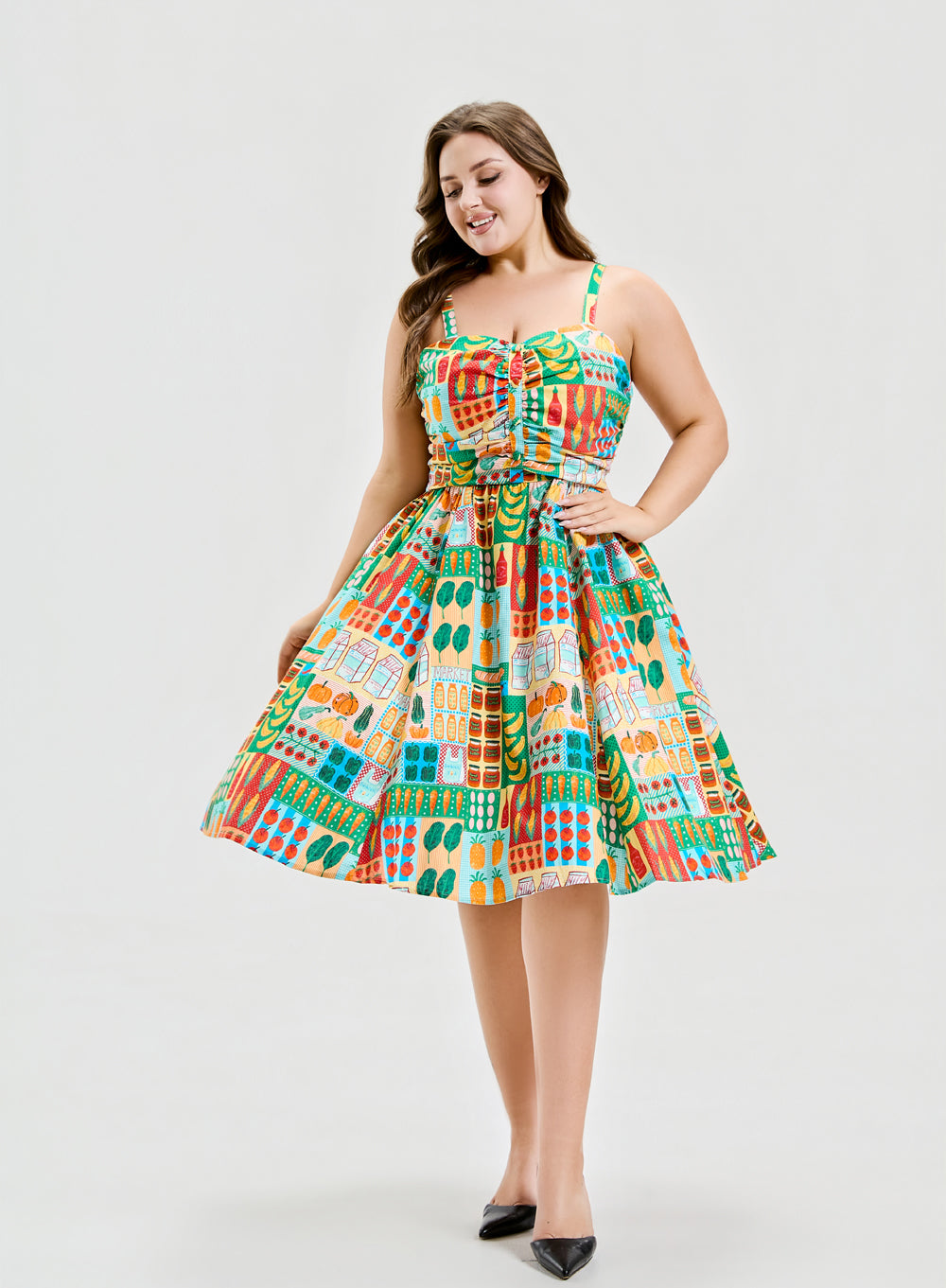 The model wearing size 1X is 5 ft. 7 in. (43-35-46)