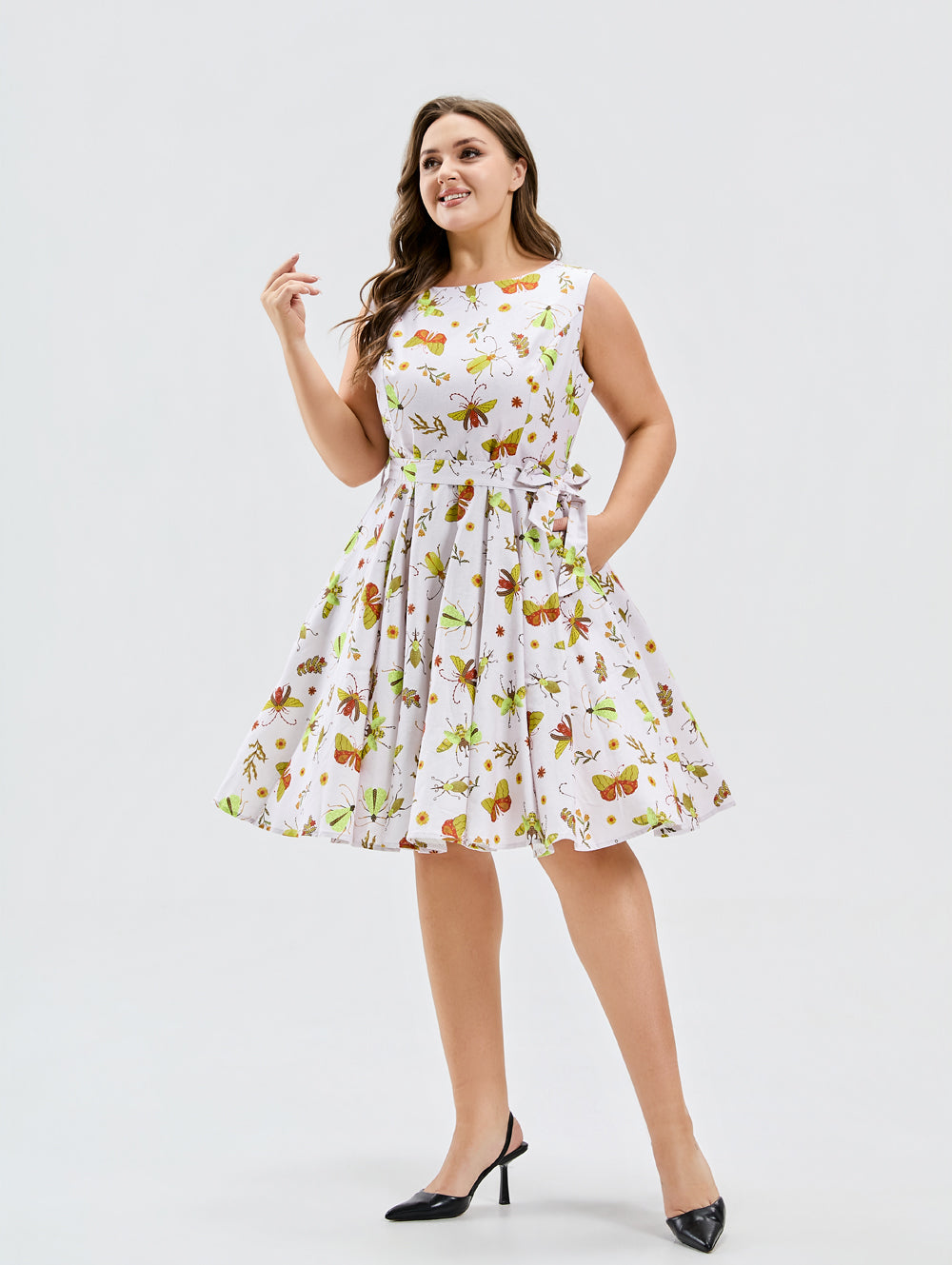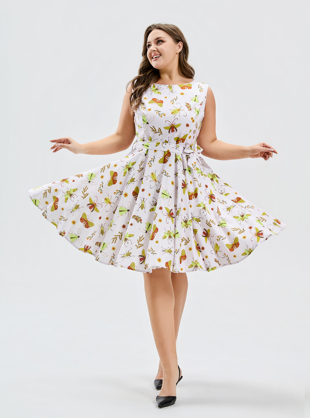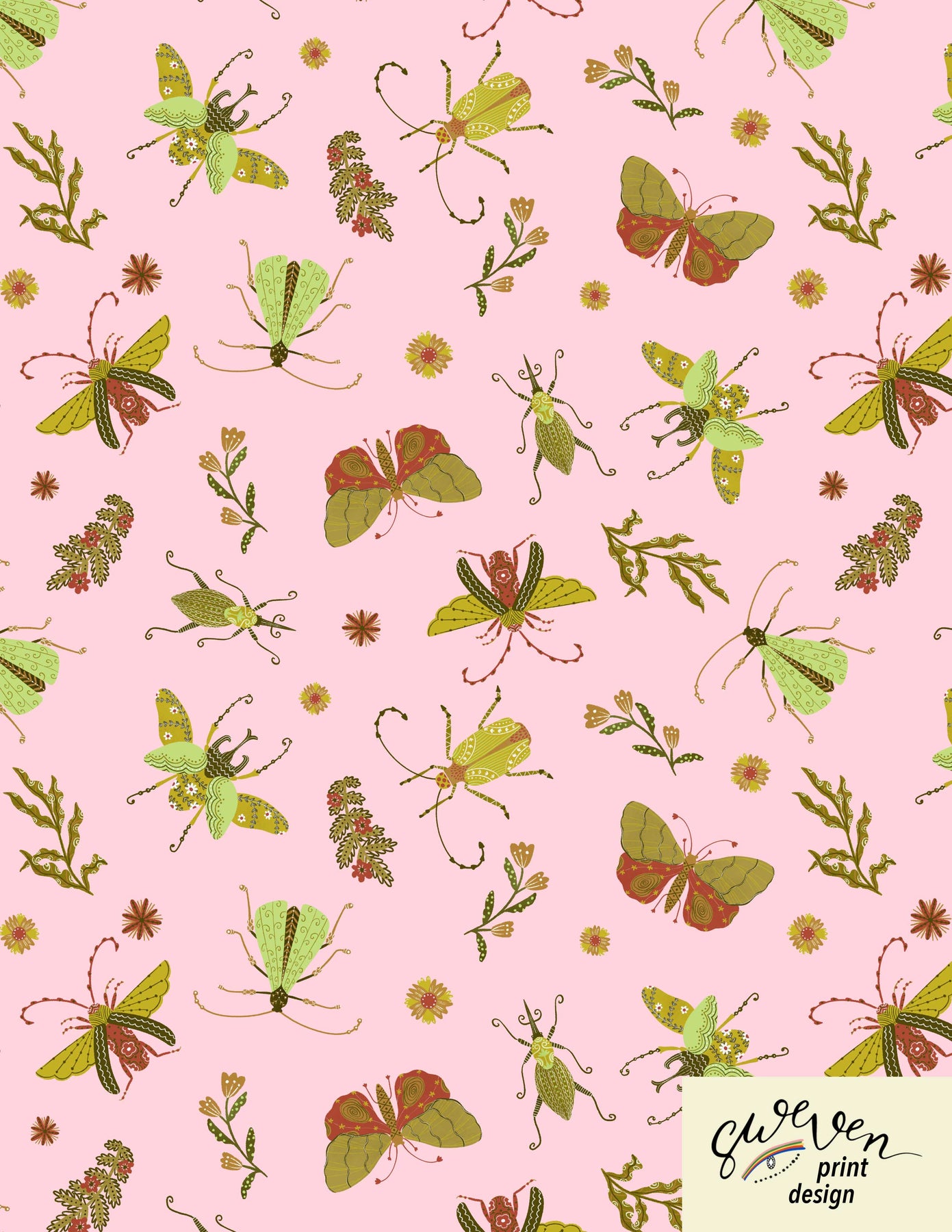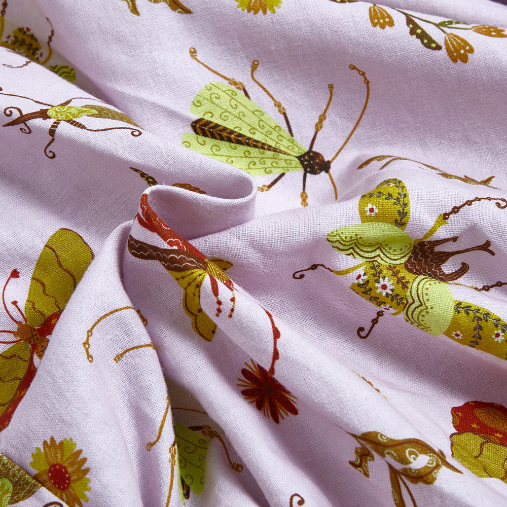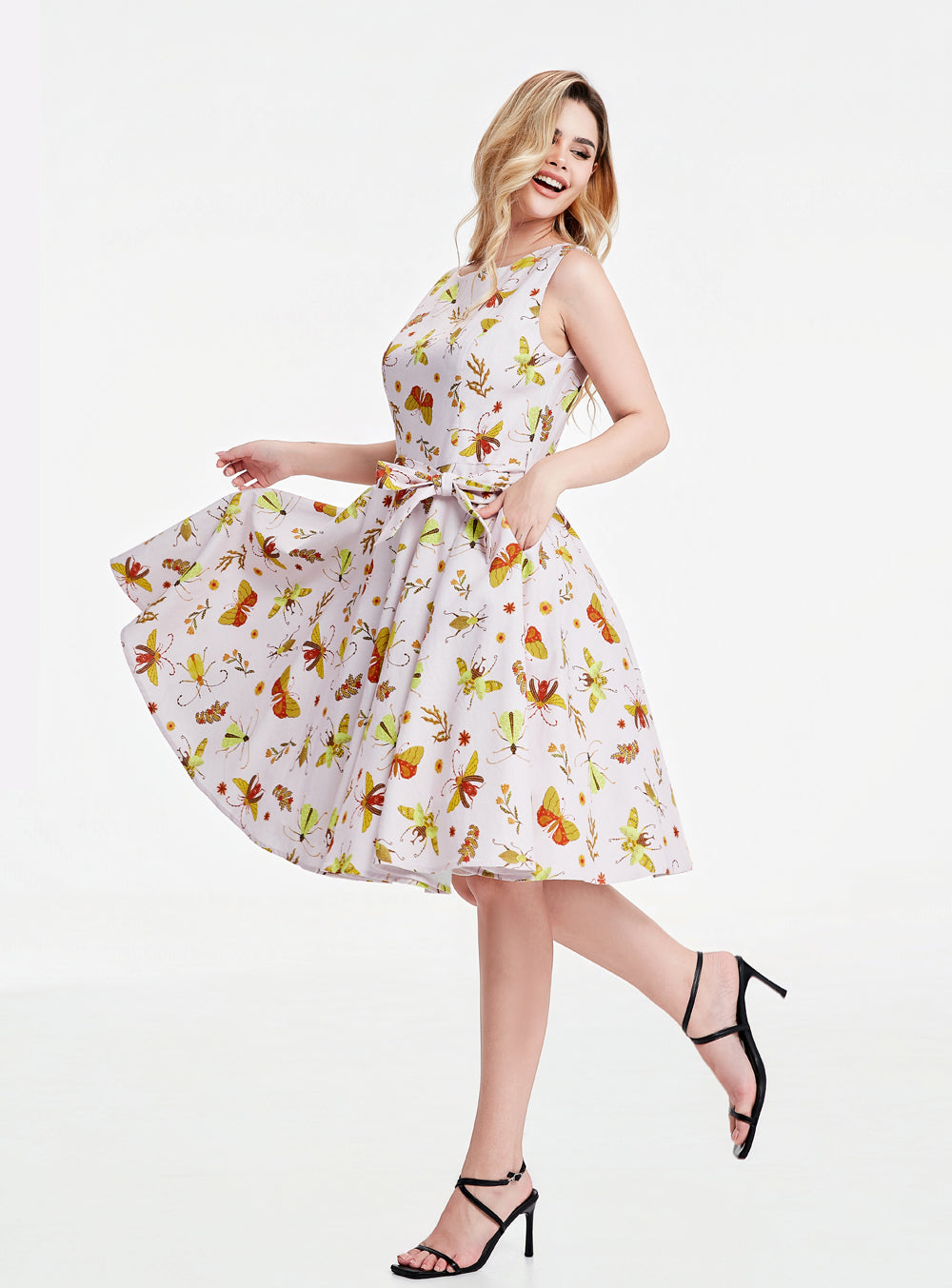 "Our beloved Summer Nights print is back, now in a fresh new colorway! Previously a favorite in navy, this season it takes flight on a soft pink background. The delicate mix of fluttering wings and wildflower sprigs makes this dress a dreamy blend of vintage charm and playful whimsy."